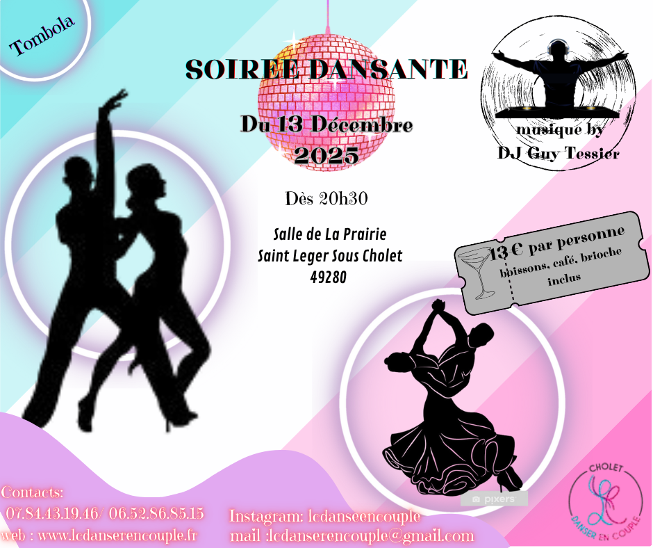 Comme chaque année participez à notre soirée, toutes danses, animée par Guy Tessier, dans une belle salle en parquet